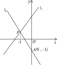 如圖,直線l1與l2相交于點P,l1的函數(shù)表達(dá)式y(tǒng)=2x+3,點P的橫坐標(biāo)為-1,且l2交y軸于點A(0,-1).