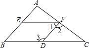 已知:如圖,∠1=∠2,∠3=100°,∠B=80°.求證:EF∥CD.