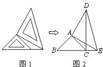 兩個(gè)大小不同的等腰直角三角形三角板如圖1所示放置,圖2是由它抽象出的幾何圖形,