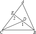 如圖所示,D是△ABC內(nèi)一點(diǎn),延長BD交AC于E,用“>”表示∠1、∠2、∠A的關(guān)系