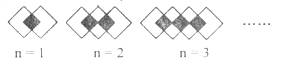 用同樣大小的正方形按下列規(guī)律擺放,將重疊部分涂上顏色,如下圖所示,那么,第n個(gè)圖案中大小正方形的個(gè)數(shù)共有( )個(gè)。