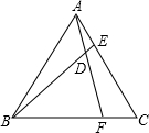 如圖,已知△ABC是等邊三角形,分別在AC、BC上取點(diǎn)E、F,且AE=CF,BE、AF交于點(diǎn)D,則∠BDF=