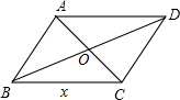 如圖,在平行四邊形ABCD中,對角線AC、BD、相交于點(diǎn)O.如果AC=8,BD=12,BC=x,則x的取值范圍是( 。