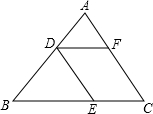 如圖:已知△ABC中,點(diǎn)D在AB上,點(diǎn)E在BC上,點(diǎn)F在AC上,DE∥AC,DF∥BC,若AF=2cm,F(xiàn)C=5cm,BC=14cm.求四邊形DECF的周長(zhǎng).