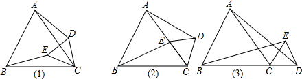 若將△DEC繞點C旋轉(zhuǎn)至圖(2),(3)所示的情況時,其余條件不變,BE與AD還相等嗎?利用圖(3)說明理由.
