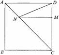 如圖,正方形ABCD的邊長(zhǎng)為8,M在D上,且DM=2,N為AC邊上的一個(gè)動(dòng)點(diǎn),則DN+MN的最小值為 .