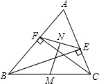 如圖,在△ABC中,M、N分別是BC與EF的中點,CF⊥AB,BE⊥AC.