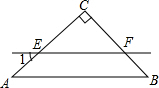 如圖所示,在△ABC中,∠C=90°,EF∥AB,∠1=50°,則∠B的度數(shù)是