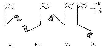 下面哪個圖能近似反映上午九點北京天安門廣場上的旗桿與影子的位置關系( )