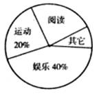 某中學團委會為研究該校學生的課余活動情況,采取抽樣的方法,從閱讀、運動、娛樂、它等四個方面調(diào)查了若干名學生的興趣愛好,并將調(diào)查的結(jié)果給制成了如下兩幅不完整的統(tǒng)計圖,請你根據(jù)圖中提供的信息解答下列問題: