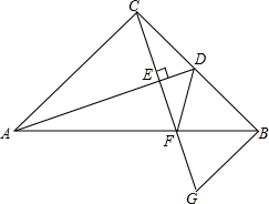 △ABC中,∠ACB=90°,AC=BC,AD是中線,過C的直線CG⊥AD于E,交AB于F,∠FBG=45°.
