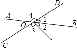 如圖,直線AB,CD相交于點(diǎn)O,且∠1=∠2.