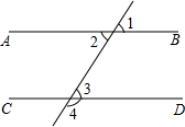 如圖所示,直線AB∥CD,∠2=67°,則∠1=