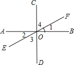 如圖所示,AB⊥CD于點(diǎn)O,EF經(jīng)過(guò)點(diǎn)O,∠1=27°,則∠2=