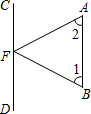 如圖,AB∥CD,F(xiàn)在CD上,∠1=62°,∠2=70°,則∠AFB=