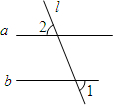 如圖,直線l與直線a,b相交,且a∥b,∠1=80°,∠2=