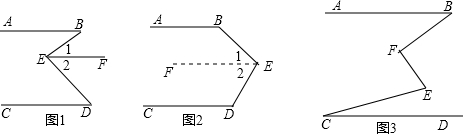 (2)已知:如圖2,AB∥CD,請(qǐng)直接寫出∠BED、∠B、∠D三者之間的關(guān)系式.