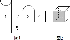 已知圖1是圖2中正方體的平面展開圖,其中有五個面內(nèi)都標(biāo)注了數(shù)字,則圖2中陰影的面是圖1中的