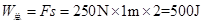 ,t=10s,物體上升的高度是h=1m, 人拉繩的力為F=250N,有用功: