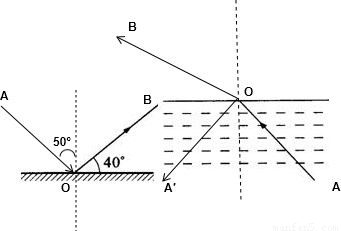 則反射角為90°-40°=50°,入射角也為40°;