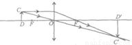凸透鏡成像規(guī)律可以通過(guò)畫(huà)光路圖去理解.在光路圖中凸透鏡用圖甲表示,O點(diǎn)為光心,F(xiàn)為其焦點(diǎn).圖乙是運(yùn)用經(jīng)過(guò)凸透鏡的兩條特殊光線,所畫(huà)物體AB經(jīng)凸透鏡成的像A′B′的光路圖.請(qǐng)參照?qǐng)D乙,在圖丙中畫(huà)出物體CD經(jīng)過(guò)凸透鏡所成的像C′D′的光路圖.