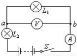 【答案】分析:S閉合后,兩個燈不發(fā)光,電流表的指針幾乎不動,說明電路是開路;電壓表的指針有明顯的偏轉(zhuǎn),說明從a點到電源正極、從b點到電源負(fù)極是通路,在a、b兩點之間有開路.