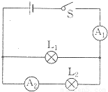解答:解:由圖知,兩燈泡并聯(lián),A1測干路中的電流,A2測通過L2的電流;