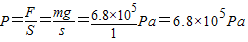 解答:解:壓力F=G=mg=68×1000×10N=6.8×105N,面積S=1×1=1m2