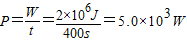 (3)牽引力做的功為2×106J,牽引力的功率是5.0×103W.