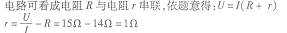 干電池是我們實(shí)驗(yàn)時(shí)經(jīng)常使用的電源,它除了有穩(wěn)定的電壓外,本身也具有一定的電阻。實(shí)際使用時(shí),可以把干電池看成一個(gè)理想的電源(即電阻為零)和一個(gè)電阻,串聯(lián)組成,如圖(a)所示。用圖(b)所示的電路可以測量出一個(gè)實(shí)際電源的電阻值。圖中R=14Ω,開關(guān)S閉合時(shí);電流表的讀數(shù)I=0.2A;已知電源電壓U=3V,求電源電阻r的大小。