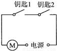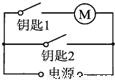 解答:解:因?yàn)殡妱?dòng)機(jī)要兩把鑰匙同時(shí)控制,任何一把鑰匙都無法打開,所以兩把鑰匙串聯(lián)連接同時(shí)控制電動(dòng)機(jī),符合要求的電路只有選項(xiàng)A.