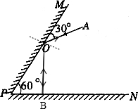 解答 解:先畫出法線,根據(jù)反射角等于入射角在法線下側(cè)畫出反射光線OB;反射角等于入射角為90°-30°=60°,反射光線OB與鏡面PM的夾角為30°,而兩鏡面夾角為60°,由此可知反射光線OB垂直鏡面PN入射,則光線OB被垂直返回,則光線沿原路返回,如圖所示:![]()