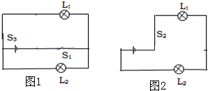 解答:解:當(dāng)S1、S3 閉合,S2斷開時(shí),如圖1:從電源正極流出的電流是分兩條路徑分別流入燈泡L2、L1的,所以連接方式是并聯(lián).