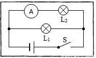 用圖所示的器材,按下面要求在虛框內(nèi)畫出電路圖,并用筆畫線連接電路.要求:L1和L2并聯(lián),用電流表測(cè)出L2中的電流(約1.2A),S作總開(kāi)關(guān).