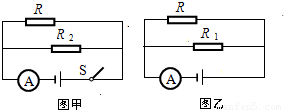 【答案】分析:先畫出兩種情況的等效電路圖,根據(jù)并聯(lián)電路的電壓特點和電流特點以及歐姆定律分別表示出兩電路圖中電流表的示數(shù),聯(lián)立方程即可求出電源電壓和R的阻值.