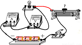(1)連接電路圖時,開關應斷開;滑動變阻器上端任意一接線柱與燈泡連接即可,如下圖所示:
