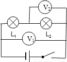 【答案】分析:由電路圖可知,兩燈泡串聯(lián),電壓表V1測(cè)電源兩端電壓,電壓表V2測(cè)燈L2兩端電壓;由串聯(lián)電路特點(diǎn)求出燈L1兩端電壓;