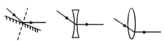 如圖所示是光線在空氣中的傳播光路,畫(huà)出可使光線沿圖所示方向改變的不同光學(xué)元件及其放置的位置.