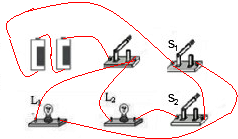 D.S1、S2、S3均閉合時(shí),燈L1亮,燈L2不亮