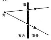 室內(nèi)一盞電燈通過木板隔墻上的兩個小洞,透出兩條細(xì)小光束(如圖9所示)。請根據(jù)這兩條光束的方向確定室內(nèi)電燈的位置。(保留作圖痕跡)