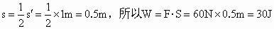 如圖所示,物體G=400N,在水平面上移動時受到30N阻力,用水平拉力F向右拉動時,物體G恰能做勻速運動,求當物體移動100cm時,力F所做的功,動滑輪對物體所做的功.(滑輪重及繩與輪摩擦不計)