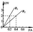 解答:解:如圖,由U-I圖象得出:當U=2V時,I1=0.2A,I2=0.4A,