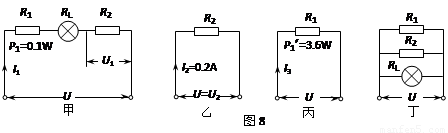 只閉合開(kāi)關(guān)S2時(shí),電路如圖8丙所示;開(kāi)關(guān)都閉合時(shí),電路如圖8丁所示。