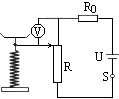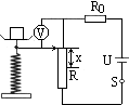 在科技小組活動(dòng)中,亮亮同學(xué)受如圖甲所示的電子秤的啟發(fā),自行設(shè)計(jì)了一個(gè)電子秤,其原理圖如圖乙所示,他試圖用電壓表(圖中暫未畫出)的讀數(shù)來反映物體質(zhì)量的大小.設(shè)電源的電壓恒為U,定值電阻的阻值為R0,滑動(dòng)變阻器的總電阻為R,總長(zhǎng)度為l,滑動(dòng)觸頭固定在安放托盤的輕彈簧上,并能隨輕彈簧一起自由滑動(dòng),已知對(duì)托盤每施加1N的壓力,彈簧的長(zhǎng)度就會(huì)縮短a.當(dāng)托盤中不放物體時(shí),滑動(dòng)觸頭指在最上端,此時(shí)電壓表的示數(shù)為零;當(dāng)在托盤中放一物體時(shí),滑動(dòng)觸頭隨彈簧向下移動(dòng)到某一位置,于是電壓表就指示出相應(yīng)的示數(shù).
