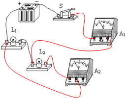 解答:解:燈泡L1燈泡L2并聯(lián),電流表A1測干路電流,則電流表A1串聯(lián)在干路中,