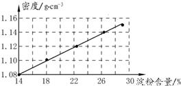 | 密度/(g?cm-3) | 1.08 | 1.10 | 1.12 | 1.14 | 1.15 |