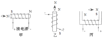 如圖所示,按小磁針的指向判定螺線管的極性、電流的方向和電源的“﹢、-”極.