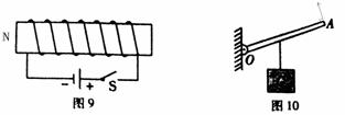 (1)請在圖9中標出開關(guān)S閉合后通電螺絲管的“N”極。