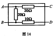 圖11是從某電子儀器拆下來(lái)的密封盒子。已經(jīng)知道盒內(nèi)有三只電阻, A、B、C、 D為四根引線,現(xiàn)用多用電表測(cè)量,得知 AC間的電阻 RAC=20歐,CD間的電阻 RCD=50歐, AD間的電阻 RAD=30歐。若用導(dǎo)線把 BD連接后,測(cè)得AD間電阻RAD=20歐,請(qǐng)?jiān)诜胶袃?nèi)畫(huà)出電阻的連接圖,并在圖中標(biāo)出每個(gè)電阻的阻值。