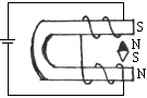 如圖所示當(dāng)開關(guān)S閉合時(shí),小磁針靜止時(shí)指向如圖,請畫出蹄形螺線管的繞線.